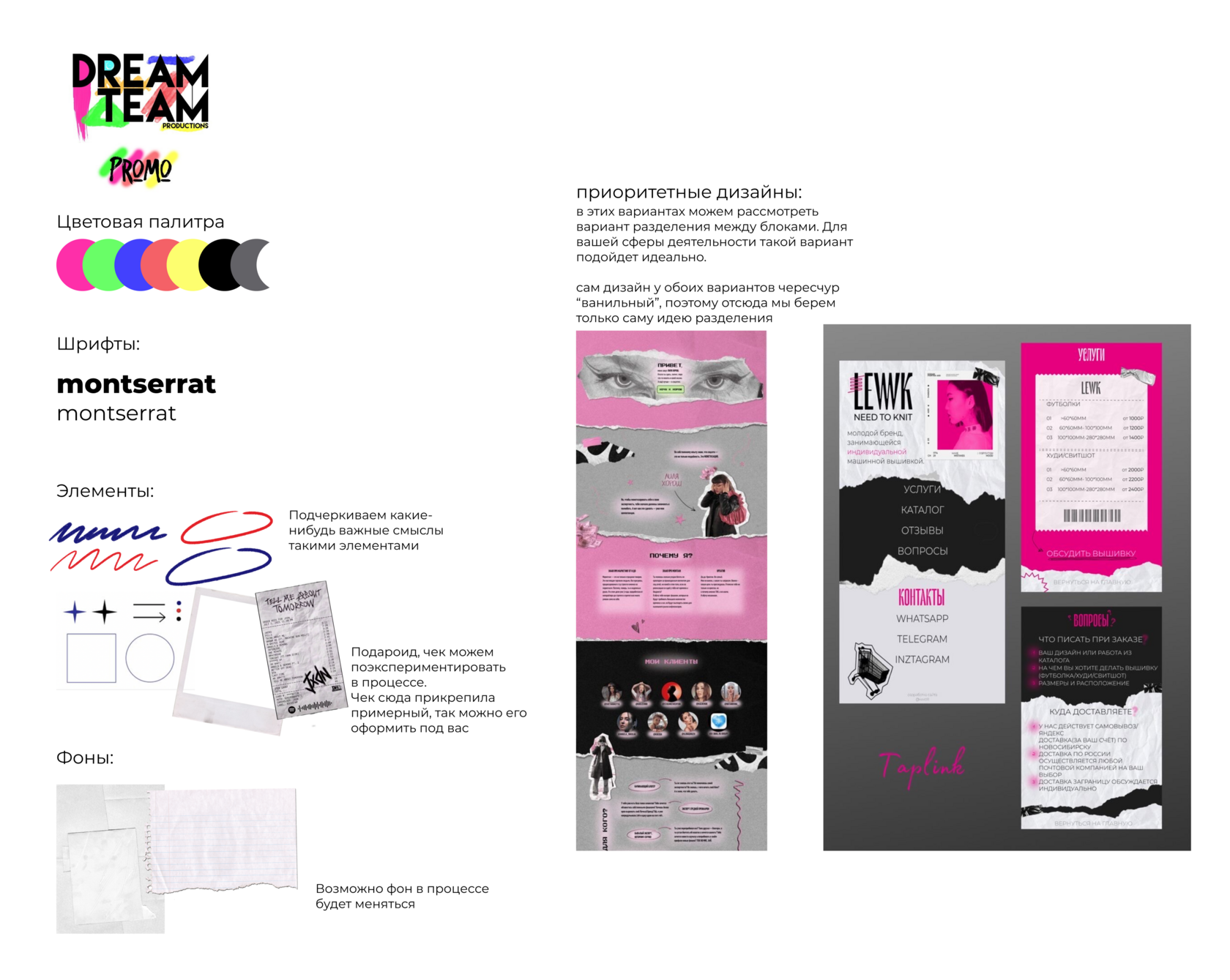 Формирование продающей структуры сайта, формирование мудборда, руководитель проекта